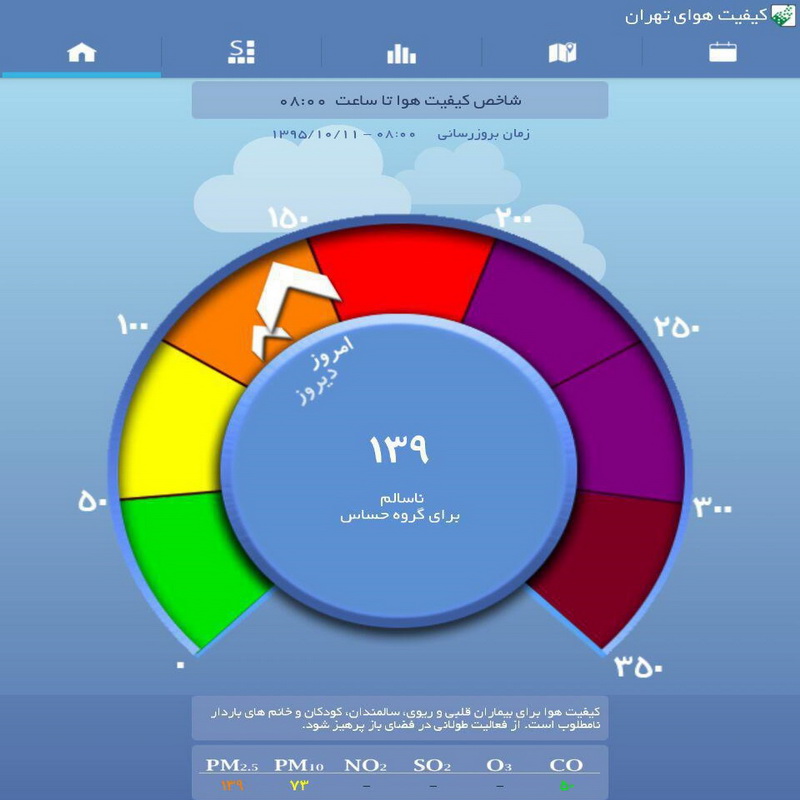 الان که دارم این مقاله را می نویسم وضعیت هوای تهران با شاخص کیفیت 139در وضعیت نا سالم برای گروه حساس قرار دارد و محدوده طرح ترافیک تا طرح زوج و فرد گسترش یافته است که حاکی از وخامت اوضاع هوای تهران می باشد.