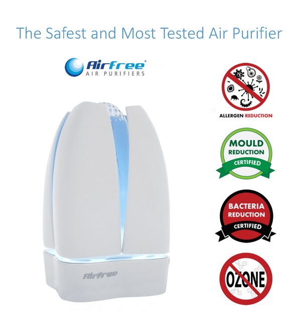 تصفیه هوای ایرفری (AirFree) مدل Lotus دستگاهی با کیفیت و زیباست و مناسب برای تصفیه هوای فضایی برابر 60 مترمربع است. این دستگاه با بکارگیری فناوری انحصاری TSS، هوا را تا 99.99درصد پاک وعاری از هرگونه آلودگی میسازد. این واقعیت در بیش از 10 آزمایشگاه معتبر بین المللی از جمله در آمریکا، آلمان، سوئد، پرتغال و غیره آزمایش شده و عملکرد و کارایی دستگاه به اثبات رسیده است. این دستگاه یک راه حل طبیعی جهت بهبود آسم و آلرژی است و هوای آلوده را برای کودکان، بیماران تنفسی، سالمندان و ... تصفیه و پاک میسازد. باکتریها، ویروسها، قارچها، ذرات آلرژیزا، مو و شوره حیوانات، مایتها و حشرات ریز، بوهای ارگانیک، گرده گیاهان، کلیه میکروارگانیسمها و پسماند آلی موجود در گرد و غبار و تمامی ریزگردهای اورگانیک و گازها مضری مانند ازن توسط این دستگاه تصفیه میشوند.