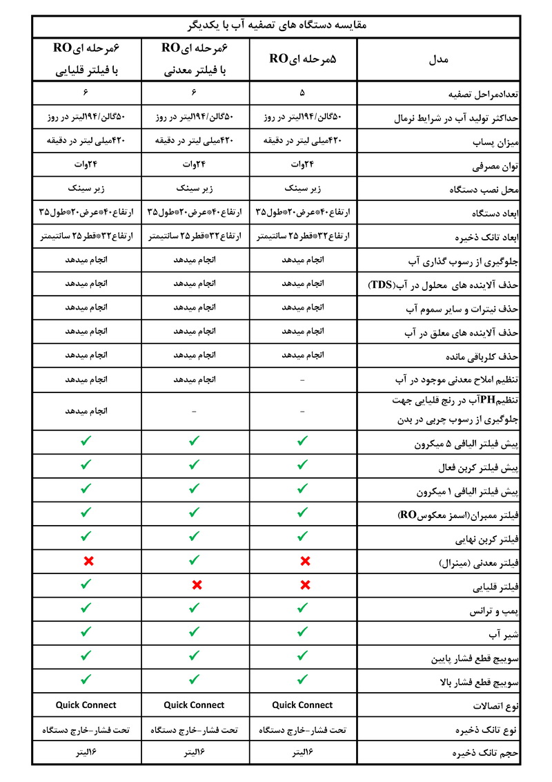 مقایسه دستگاههای تصفیه آب با یکدیگر